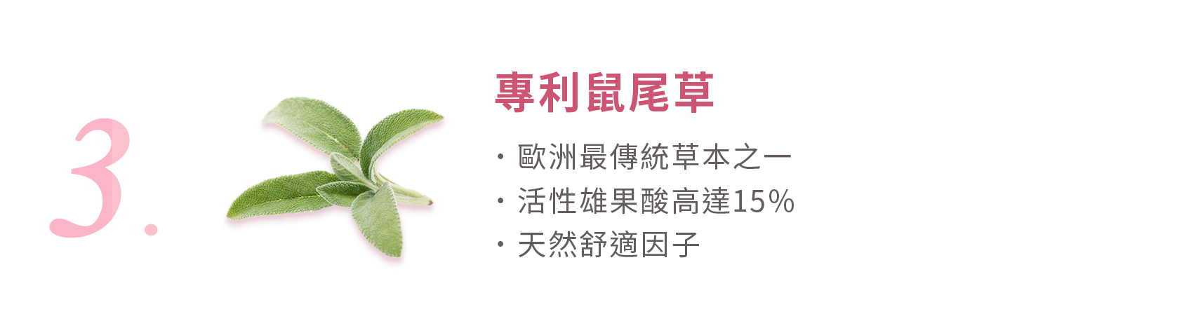 加上專利鼠尾草萃取和凝結芽孢桿菌提升清爽、舒適感。