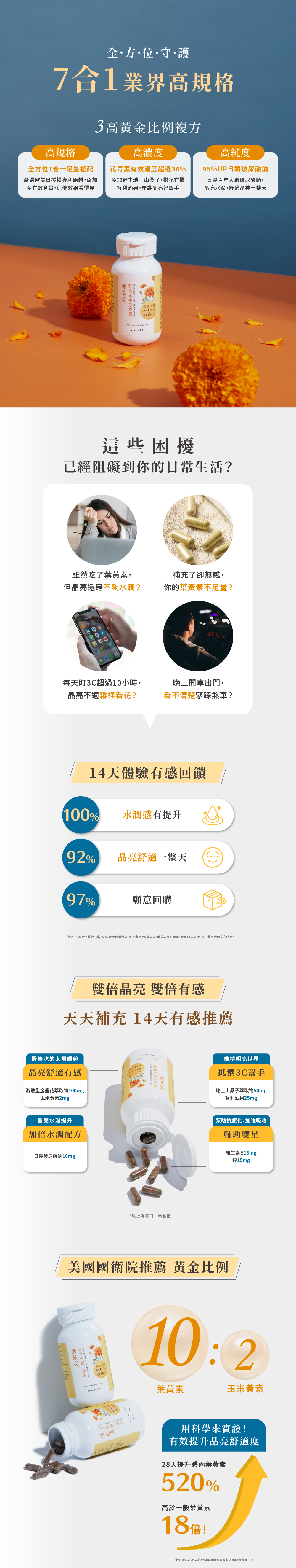 ●給你關鍵指標 3高配方+黃金比例,嚴選歐美日大廠專利原料,標章授權認證,全方位7合一足量複配