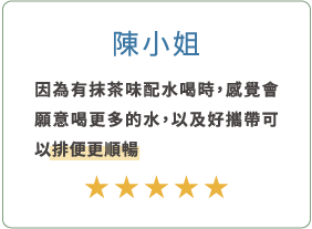 請務必確保整日總飲水量大於2000cc,讓纖維可以順利吸收水分, 避免造成纖維將水吸乾反而卡卡的反效果產生。